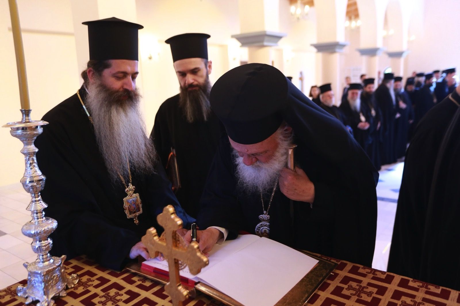 Με τούτες τις σκέψεις παρακαλώ ευλαβώς τον Παναγιώτατο Οικουμενικό μας Πατριάρχη κ. Βαρθολομαίο να προστή ευθύς αμέσως της Ακολουθίας του Αγιασμού και κατόπιν να μας απευθύνει Πατριαρχικό Χαιρετισμό».