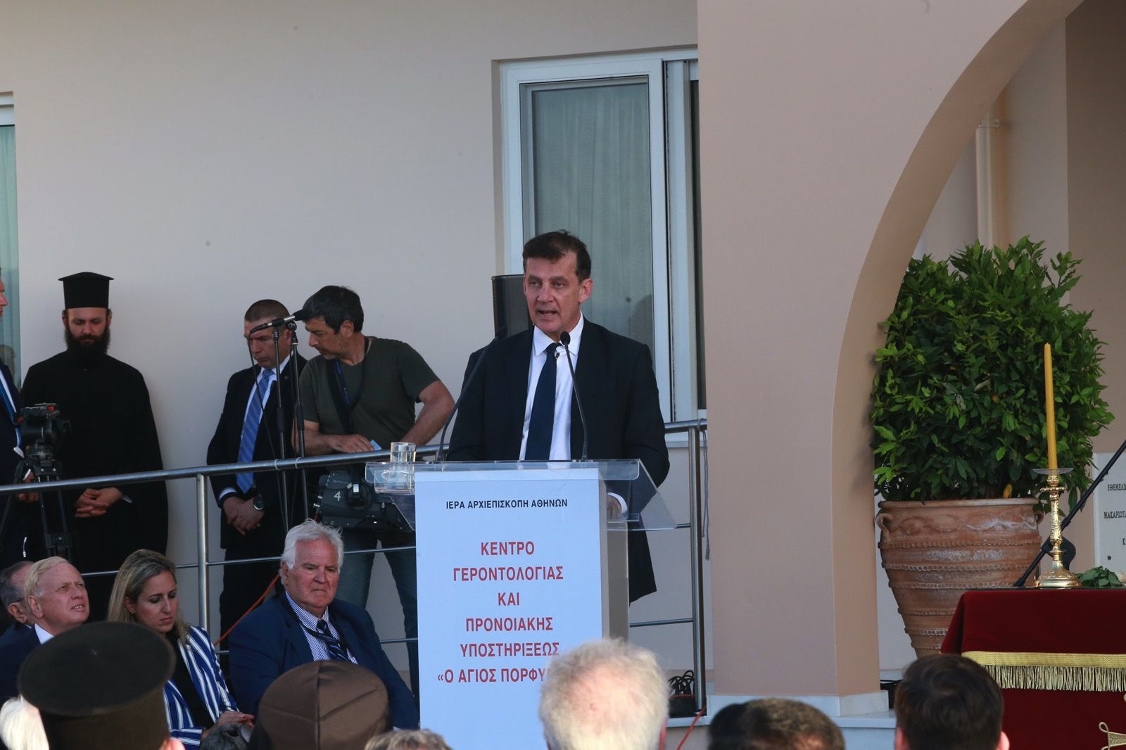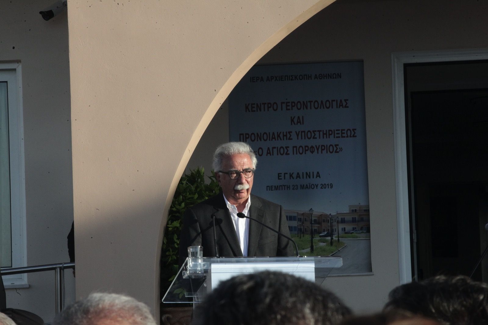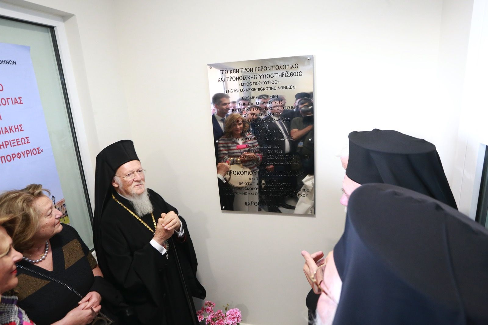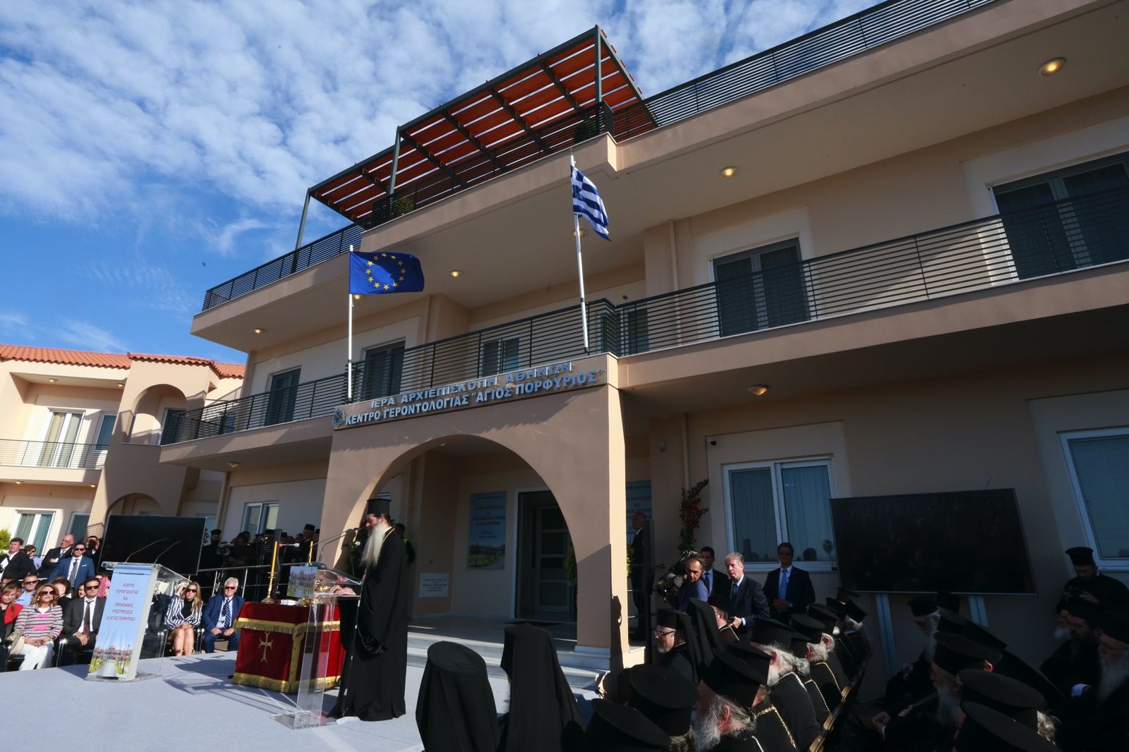 Με ιδιαίτερη συγκίνηση σας καλωσορίζω σήμερα όλους εδώ, στο Κέντρο Γεροντολογίας και Προνοιακής Υποστηρίξεως «Ο ΑΓΙΟΣ ΠΟΡΦΥΡΙΟΣ», της Ιεράς Αρχιεπισκοπής Αθηνών, για τα εγκαίνια μίας νέας εστίας αγάπης, θαλπωρής, στοργής και προσφοράς. Ενός πρότυπου και υπερσύγχρονου Κέντρου φροντίδας για την τρίτη ηλικία, αλλά και συστηματικής εκπαίδευσης και επιστημονικής έρευνας στον τομέα της προνοιακής υποστηρίξεως, φροντίδας υγείας, αντιμετώπισης νόσου Alzheimer και συναφών παθήσεων για ηλικιωμένους, αλλά και για ευπαθείς ομάδες πληθυσμού.