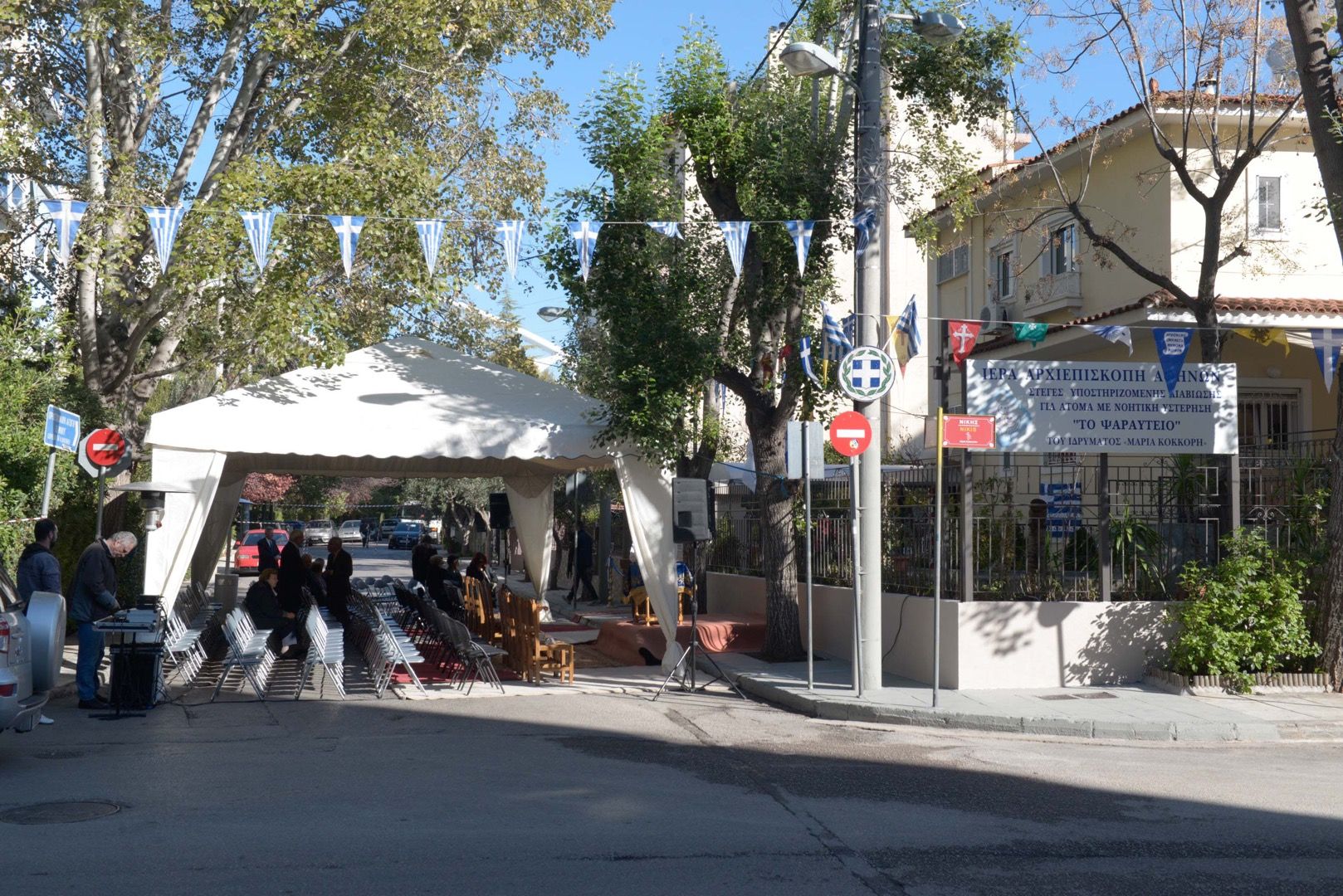 Το οικόπεδο αγοράστηκε από τον μακαριστό Σταμάτιο Ψαραύτη και τη σύζυγο του συγγραφέα, κ. Ευαγγελία Ψαραύτη. Οι ίδιοι συνέβαλαν οικονομικά στην εκκίνηση των οικοδομικών εργασιών. Έτσι, στην περιοχή της Νέας Φιλοθέης και επι των οδών Νίκης και Δωριέων, ανοικοδομήθηκε κτήριο 600 τ.μ., δύο ορόφων με οκτώ ανεξάρτητα δωμάτια-διαμερίσματα, δύο κουζίνες, υπόγειο με αίθουσα δραστηριοτήτων και κήπο με πισίνα. Το κτήριο αποτέλεσε και αποτελεί τις μόνιμες κατοικίες των οκτώ αυτών ατόμων.