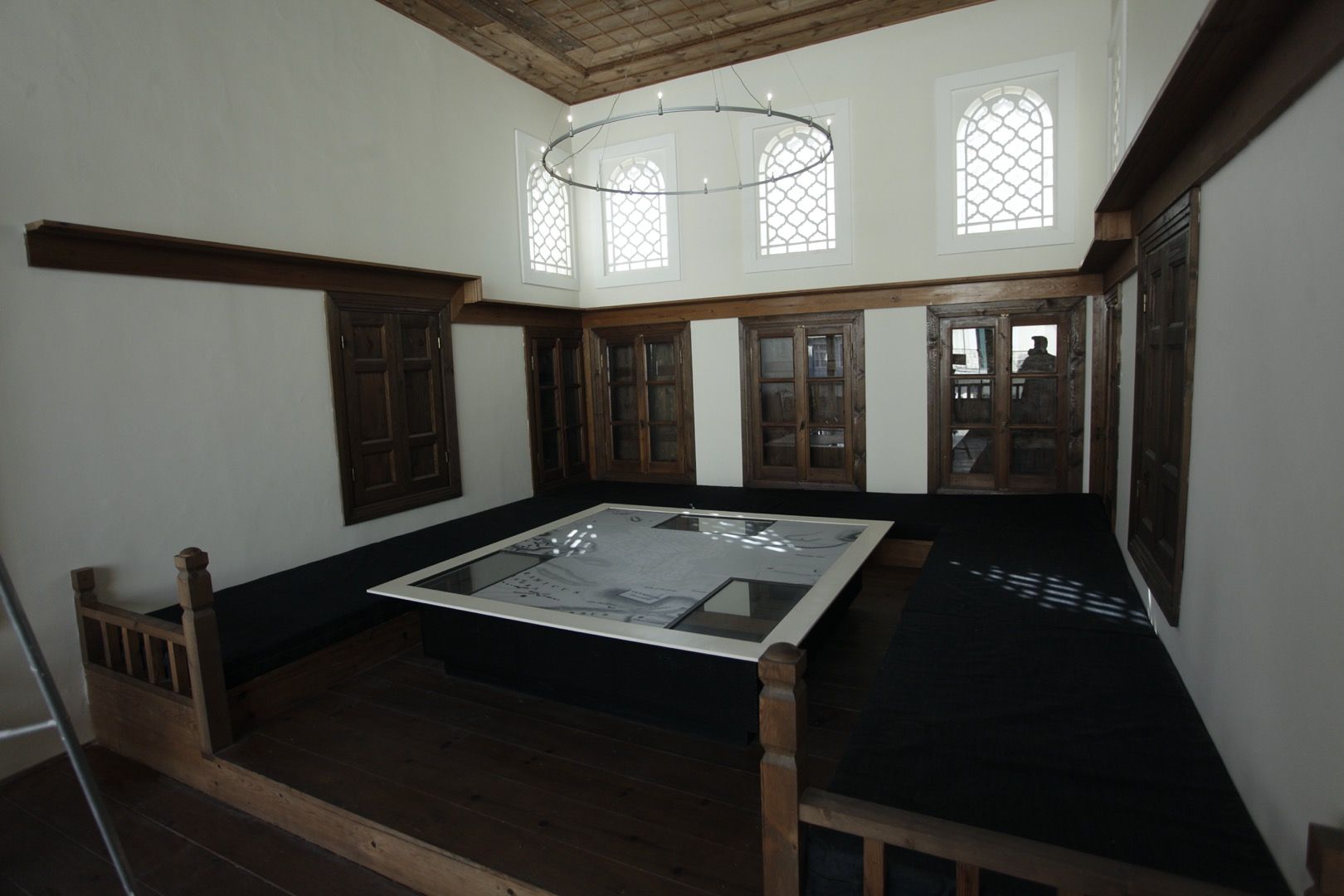 Ο όροφος, κατασκευασμένος κυρίως από ξυλόπηκτους τοίχους, συνιστά τον κύριο χώρο διαβίωσης. Δύο είναι τα βασικά στοιχεία που διαμορφώνουν την κάτοψή του, ο οντάς (η μονάδα του δωματίου για όλες τις καθημερινές δραστηριότητες) και το χαγιάτι (ένα ανοιχτό πέρασμα προς τα δωμάτια, με καθιστικά –σοφάδες– στα άκρα του και τον ορτά-σοφά στο κέντρο του, προς νότο). Στο αρχοντικό των Μπενιζέλων υπάρχουν δύο συμμετρικά διατεταγμένοι οντάδες –χειμερινός με τζάκι και θερινός–, όπου η είσοδος γινόταν μέσα από ξύλινη διώροφη μουσάντρα, που καταλάμβανε ολόκληρη τη μία στενή πλευρά τους. Οι οντάδες διαθέτουν σειρές μικρών σχετικά παραθύρων, με φεγγίτες από πάνω τους, που έκλειναν με γύψινο διακοσμημένο υαλόφραγμα στην εσωτερική παρειά τους. Χαρακτηριστικό των χώρων του ορόφου είναι η ευέλικτη επίπλωση και εσωτερική διαμόρφωση, που στη διάρκεια της ημέρας μπορούν να αλλάζουν για να ανταποκριθούν σε διαφορετικές ανάγκες. Οι προσεγμένες ξυλοκατασκευές και τα δείγματα ξυλόγλυπτης διακόσμησης που απαντούν σε αυτόν είναι συνήθεις στα κονάκια της περιόδου.